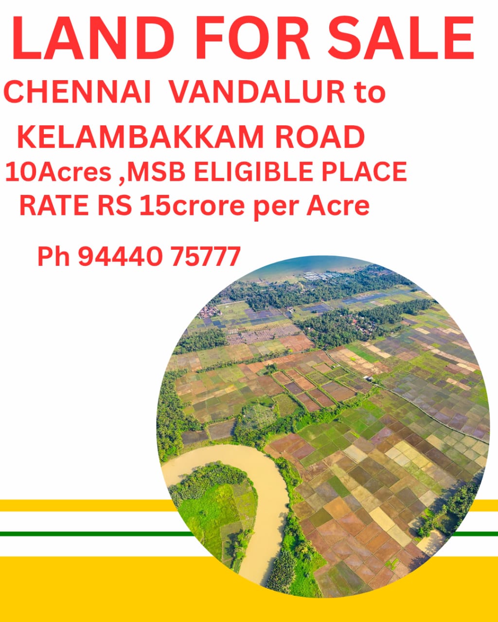 EnquiryCHENNAI VANDALUR TO KELAMBAKKAM ROAD , 10 ACRES MSB ELIGIBLE PLACE , RATE 1.50 CRORE
