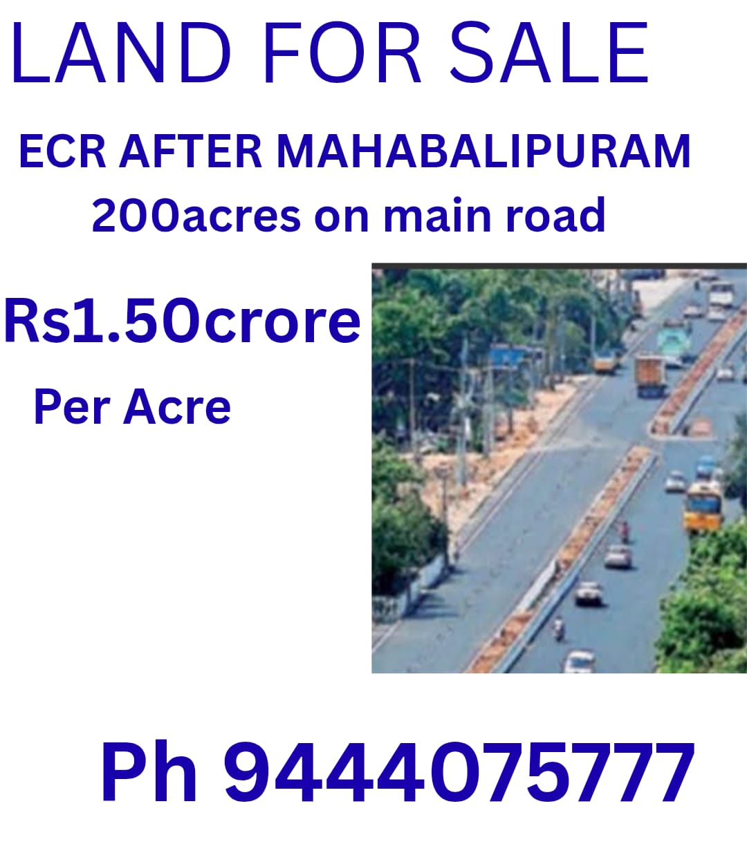 ECR AFTER MAHABALIPURAM 200 ACRES ON MAIN ROAD , RS 1.50 CRORE PER ACRE